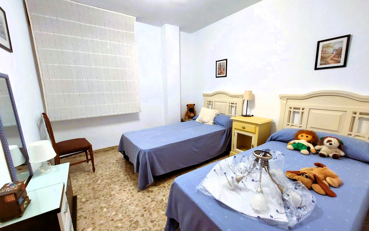 Dormitorios Secundarios (x3): Dos de ellos con dos camas individuales y cabeceros claros, y un tercero también con dos camas y armario empotrado de madera.