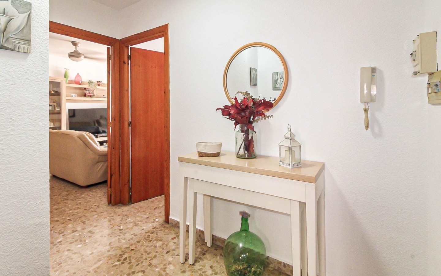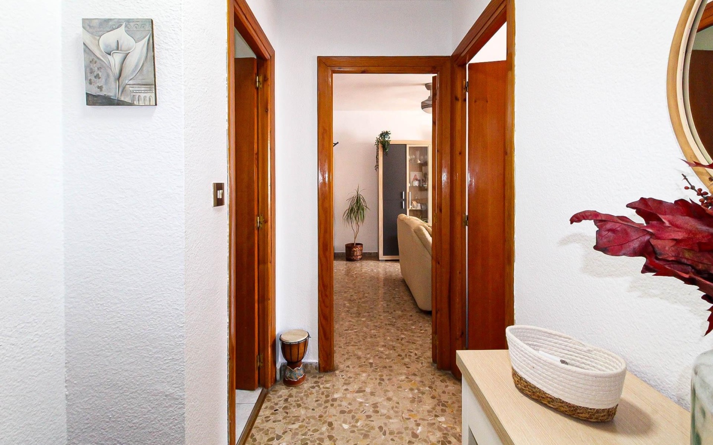 Detalles Adicionales: El piso cuenta con un cuidado diseño interior, con suelos de terrazo en las zonas comunes y dormitorios, y alicatados modernos en cocina y baños. La reciente reforma asegura que la vivienda esté en perfectas condiciones, lista para comenzar una nueva vida.