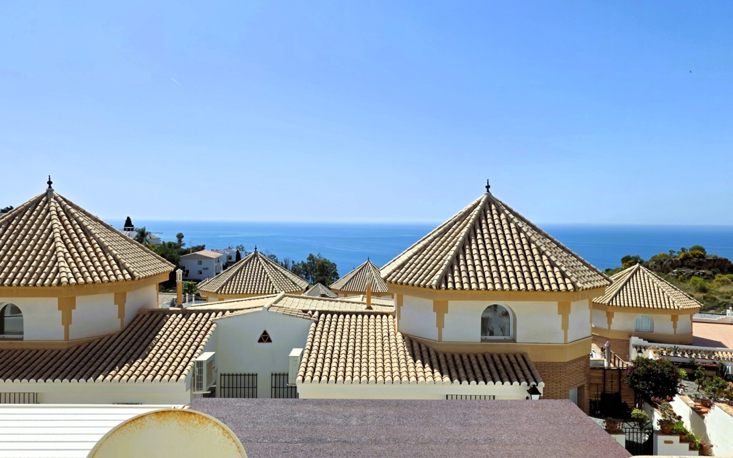 Planta Superior (Descanso con Vistas): Zona de noche compuesta por dos habitaciones dobles. La primera cuenta con un ventanal con vistas panorámicas al mar; la segunda disfruta de una terraza privada con impresionantes vistas de 180º sobre la costa y la urbanización. Incluye un baño completo con bañera y un balcón trasero.