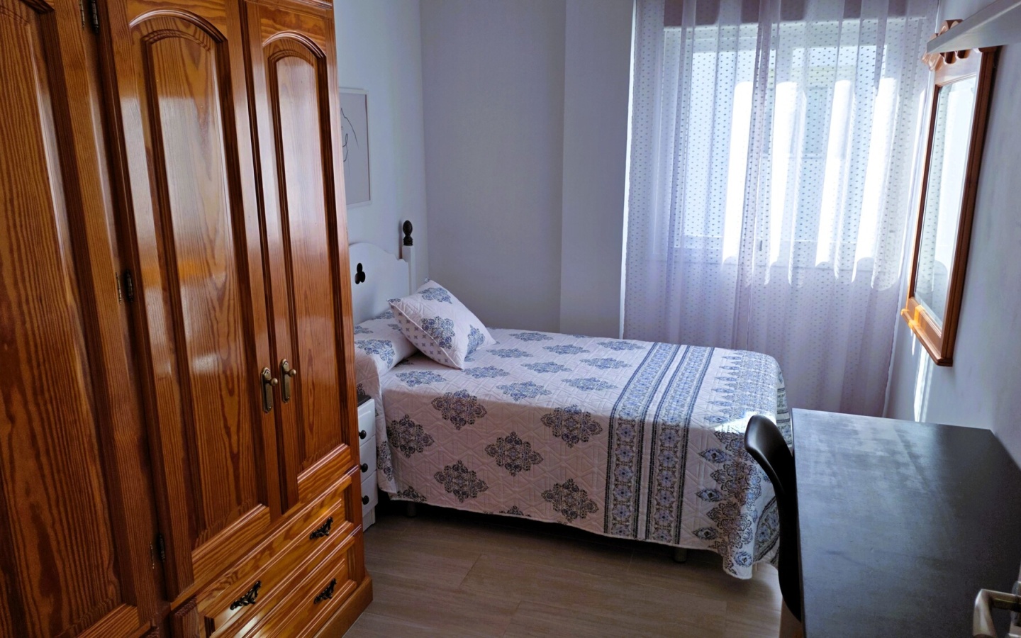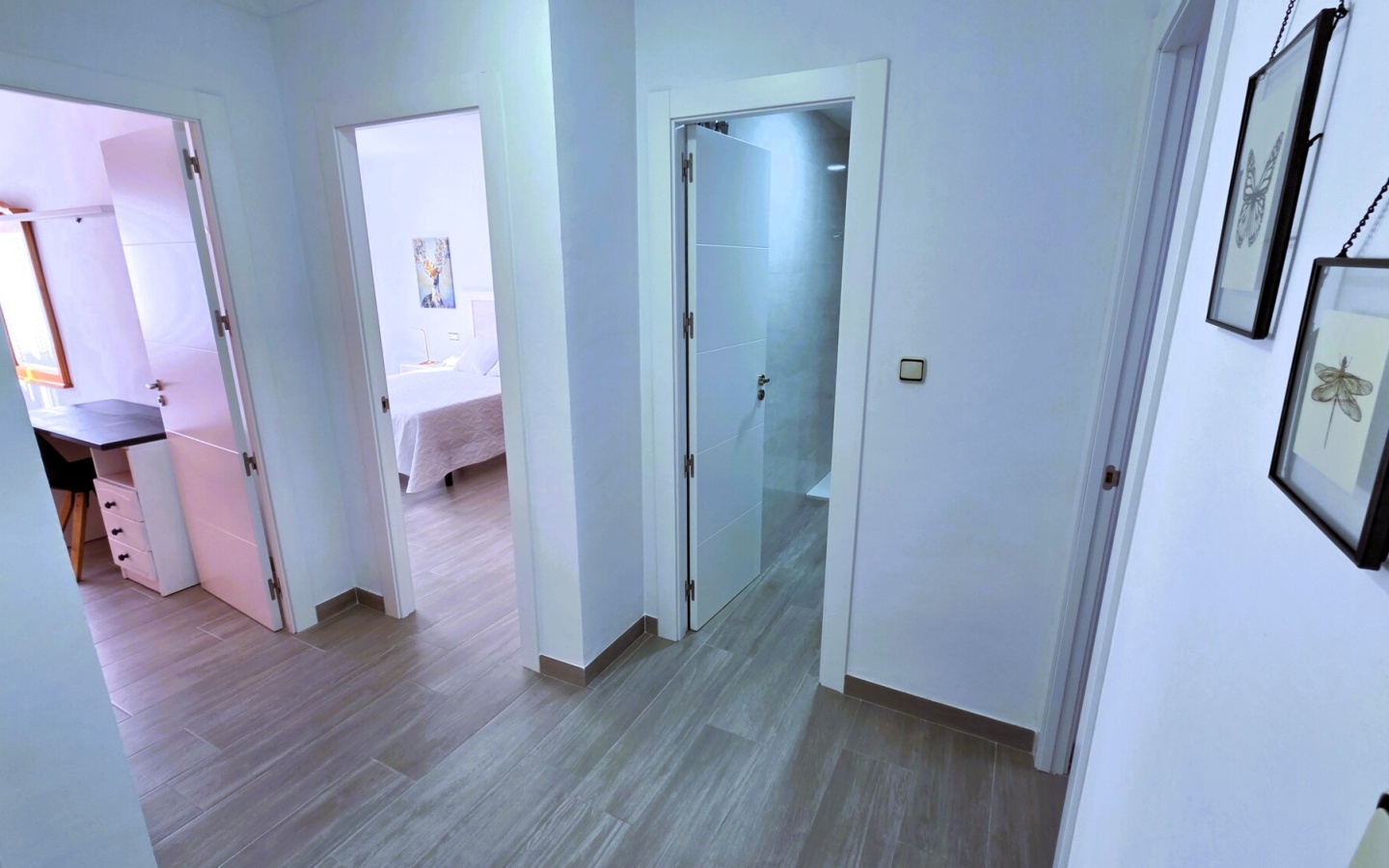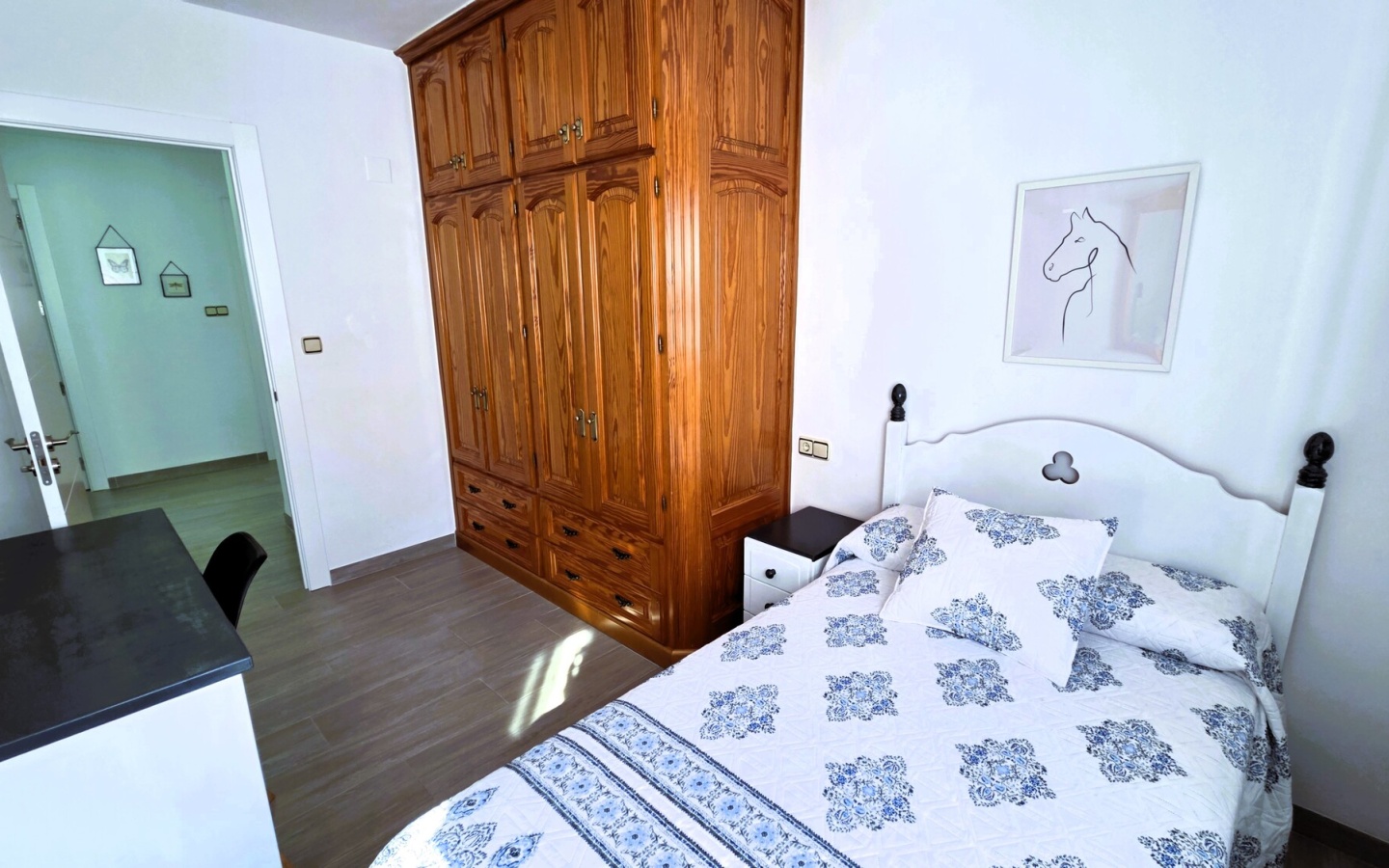 Zona de Descanso: Tres dormitorios espaciosos y serenos. El principal destaca por su gran armario de madera y su calidez, mientras que las habitaciones adicionales ofrecen versatilidad (perfectas para niños o un despacho luminoso).