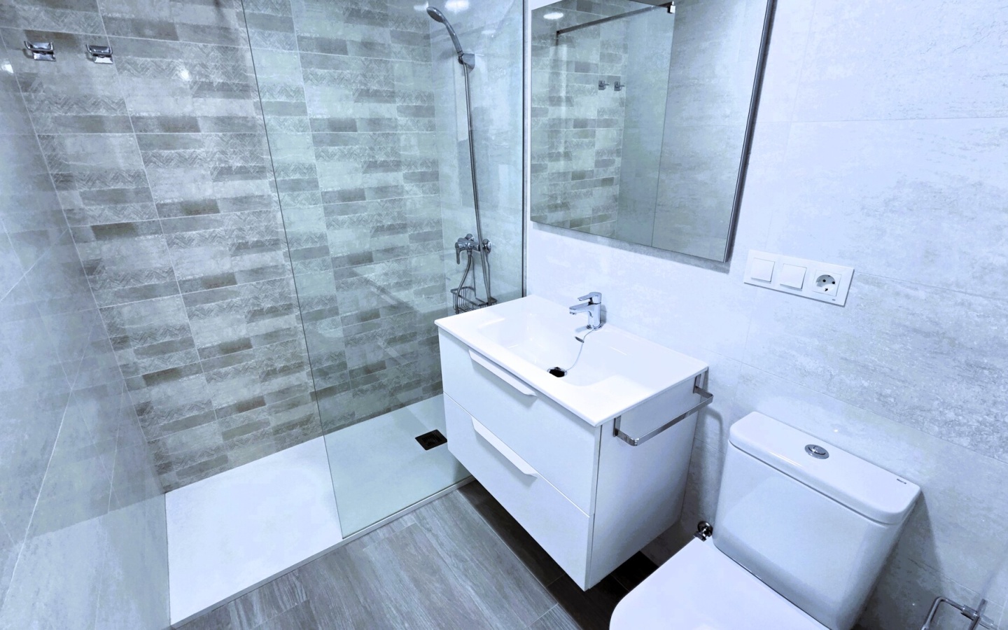Baño de Revista: Reformado con acabados de alta calidad, ducha con mampara de cristal y una estética muy actual.