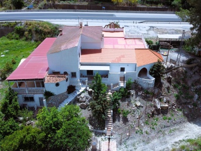 This property located in a strategic area of the town of Vélez de Benaudalla. It has almost 750m2 of construction where it formerly housed a bar-restaurant with a large home on the upper floor. In the underground floor we have a large garage with a large capacity for several vehicles. On the main floor, right at the entrance we find the bar counter and two separate toilets for men and women. Access to the large living room where the dining room tables in the restaurant were previously located, with a large fireplace that presides over said room. Large room for the industrial kitchen, cold rooms, etc. From the living room you can access the enormous covered terrace with glass, views of the Vélez River and the snow-capped mountain. On this same floor we also have two very large rooms with a bathroom included in the same room. Going up to the first floor, where the house is located, we find a huge living room presiding over the floor. Four double rooms with bathroom and one single room. Access to the two terraces with stunning views. This property has a leisure area for the little ones and a small pool. Private parking area outside the property. It is undoubtedly a great property with great potential to reopen the business or transform it into a B&B or even make a villa to use as a home.