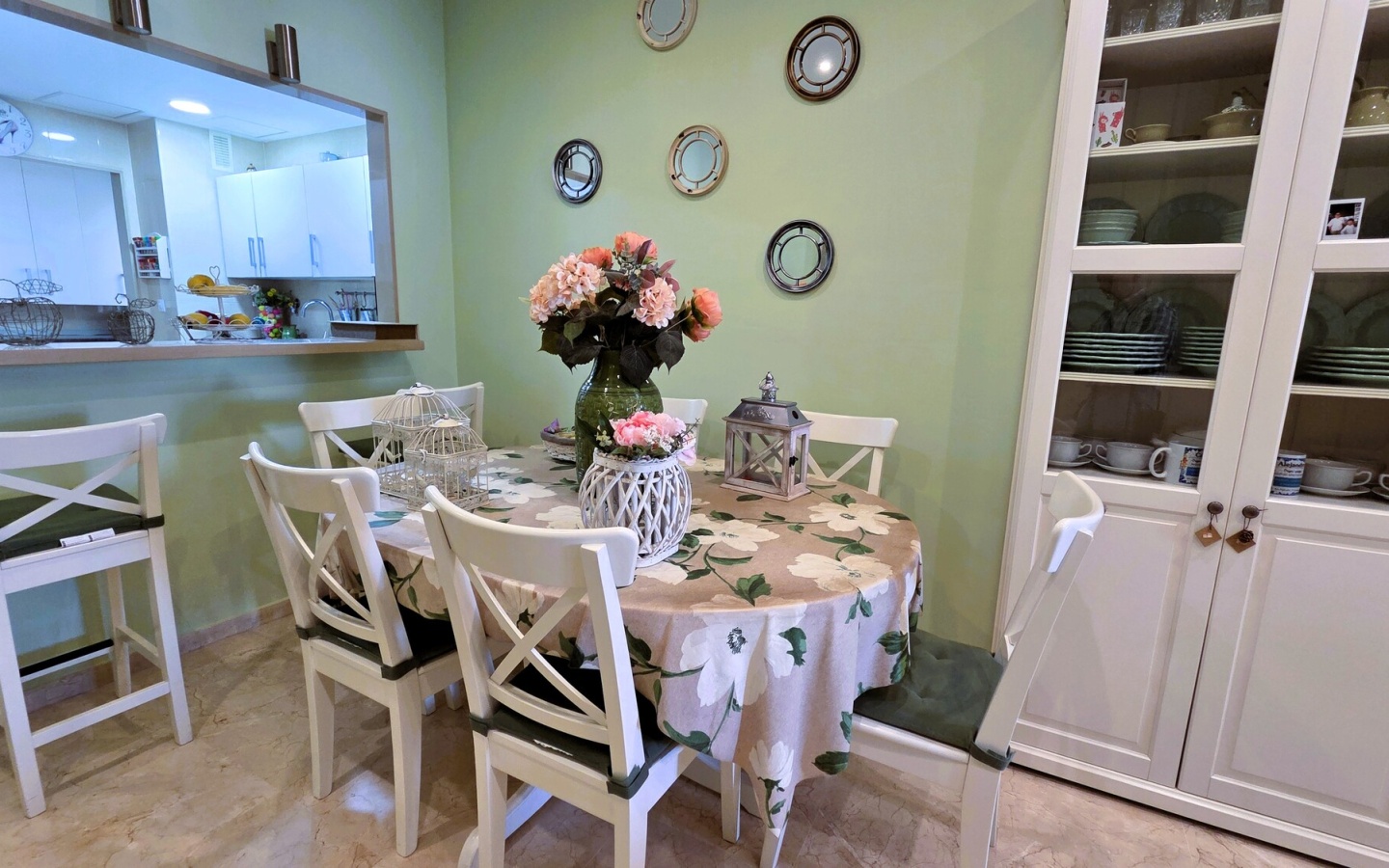 Amplio Salón-Comedor: Un espacio abierto ideal para la vida familiar y social. El comedor, elegantemente decorado, da paso a una confortable zona de estar con acceso directo a la terraza.