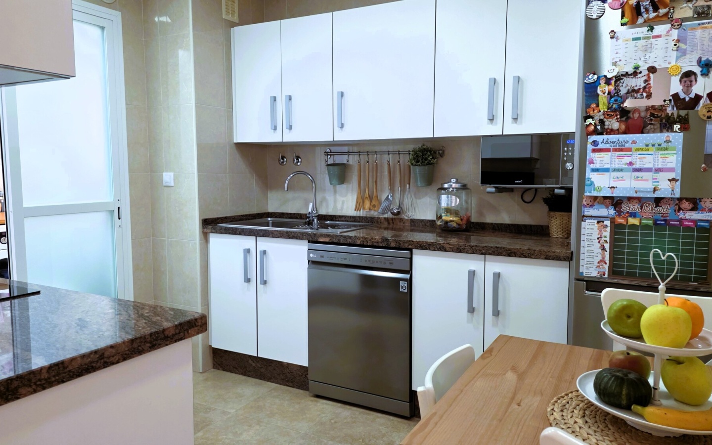 Luminoso Salón-Comedor y Cocina: El espacio de vida combina un estilo clásico y elegante, con amplios ventanales y una decoración exquisita (ver foto del salón/comedor). La cocina, moderna y funcional, cuenta con encimeras de granito y armarios blancos, con espacio para un pequeño comedor diario (ver foto de la cocina).