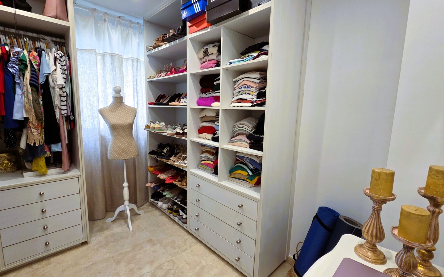 Funcionalidad: Dispone de un práctico cuarto de lavandería/almacén con amplios armarios y lavadora/secadora (ver foto de la lavandería) y un vestidor/armario con organización abierta y cajoneras (ver foto del vestidor).