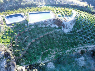 Land in production with avocados, vineyards, almond trees and two large water ponds.