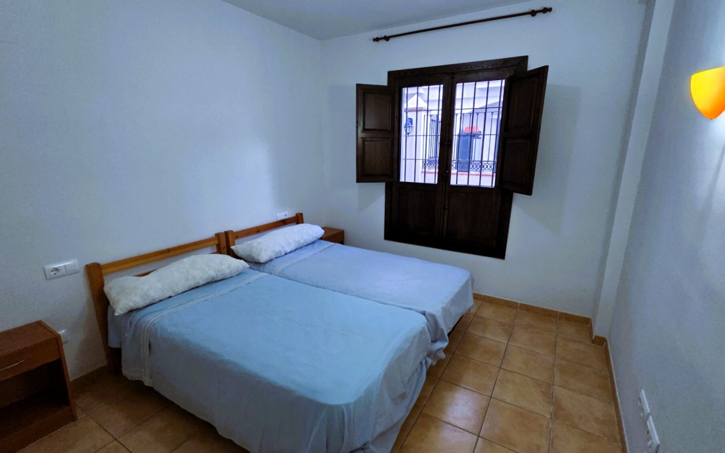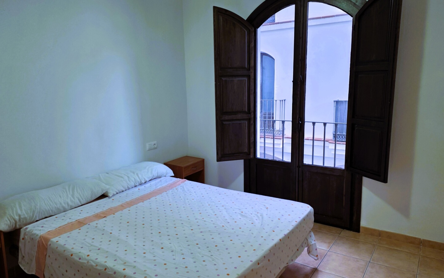 Zona de Descanso: Cuenta con 2 amplios dormitorios exteriores. El principal destaca por su gran ventanal con contraventanas de madera clásicas, aportando calidez y luz natural.