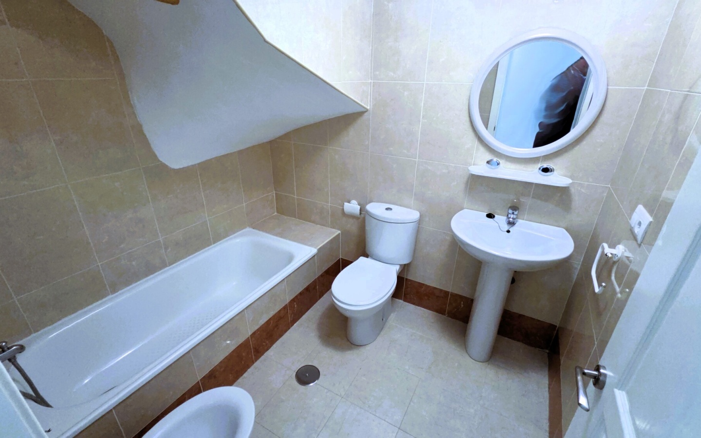 Bathrooms: It has two full bathrooms, one equipped with a shower and the other with a bathtub under a unique sloping ceiling, offering options for all tastes.