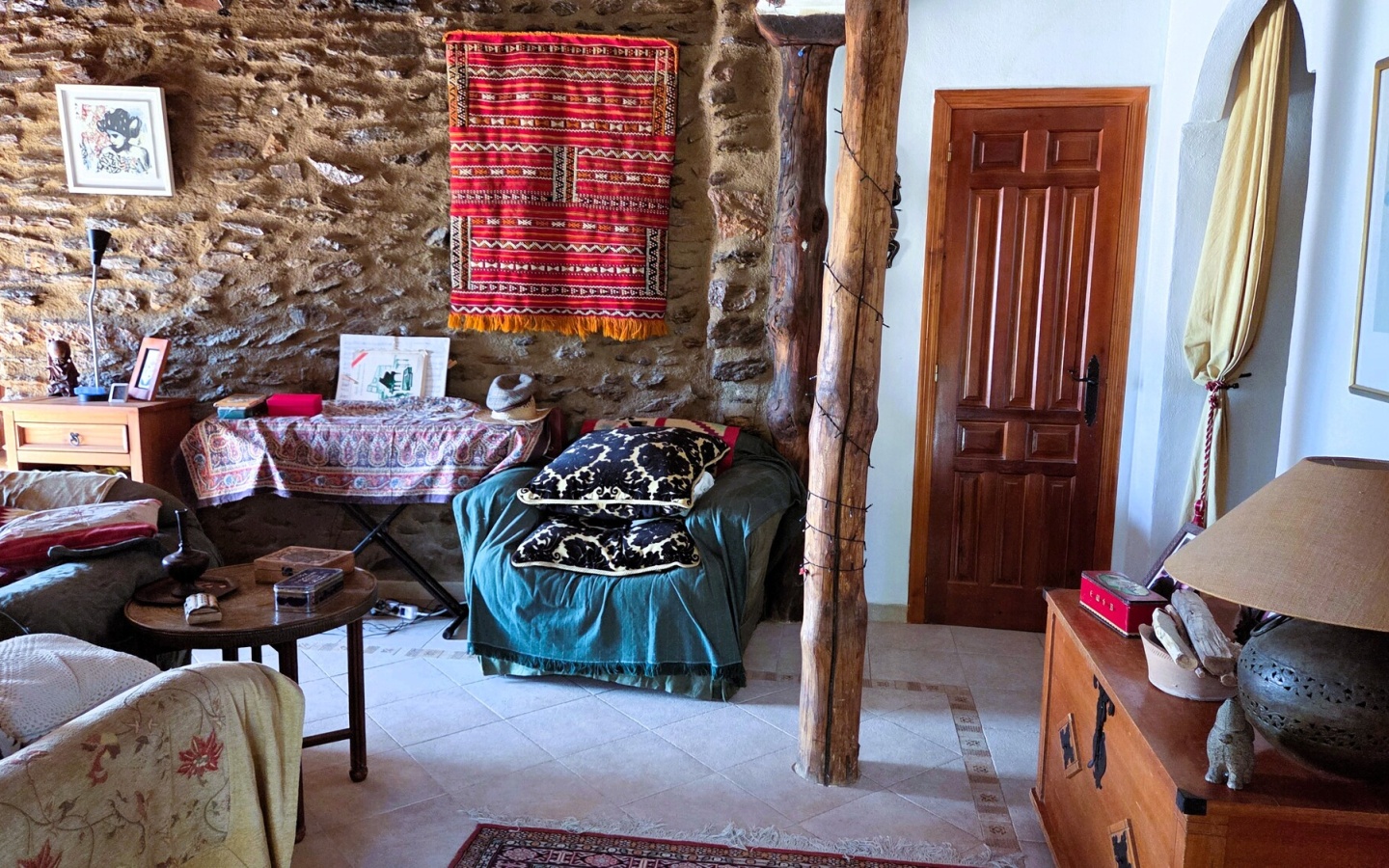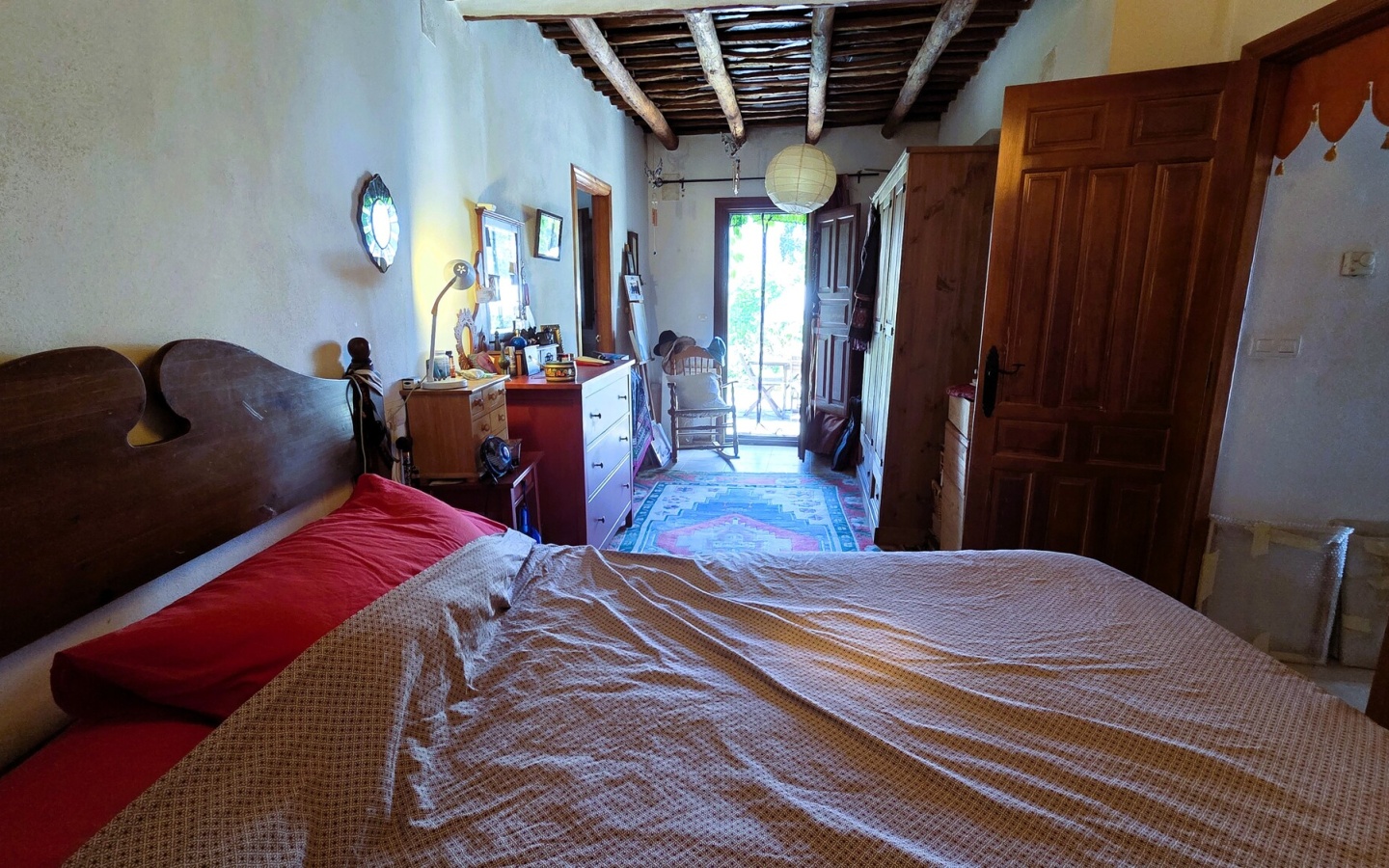 Construido en piedra y con 274 m², el cortijo ha sido cuidadosamente mantenido, conservando todo el encanto rústico de la región sin renunciar a las comodidades modernas. En su interior, la combinación de materiales naturales, vigas de madera vistas y detalles artesanales crean una atmósfera cálida y acogedora.