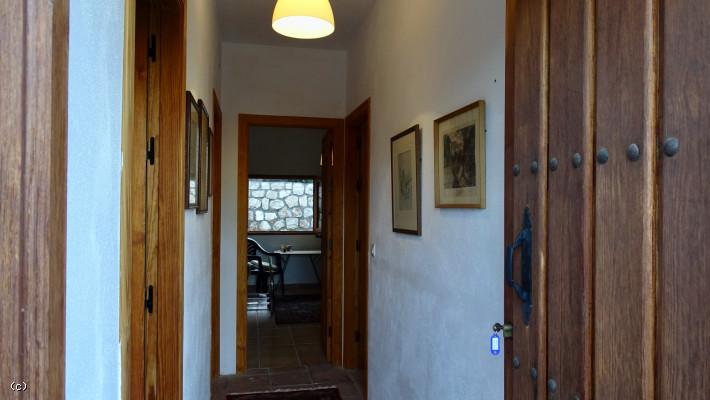 These two properties situated in a really quiet location, but not isolated. The land is around 6,600m2 with mainly flat land, planted with olive trees, almonds and a variety of shrubs, set up with an irrigation system. The first property has a covered porch for outdoor dining and relaxing, the main entrance door leads into a small passageway, off of this there is access to the double bedroom with built in wardrobe, French doors to the porch and a window to the South elavation. Access to the large family bathroom with a range of fitted storage cupboards, roll top victorian style bath and a separate shower cubicle., window to the rear of the property. Off the passage a door leads into a fully fitted kitchen with two windows overlooking the swimming pool, there is plenty of space for a dining table and chairs. Sliding doors lead through to the large sitting room with four windows, one of which is a large picture window looking out the the mountain range. There is a wood burning stove and under floor oil central heating system.