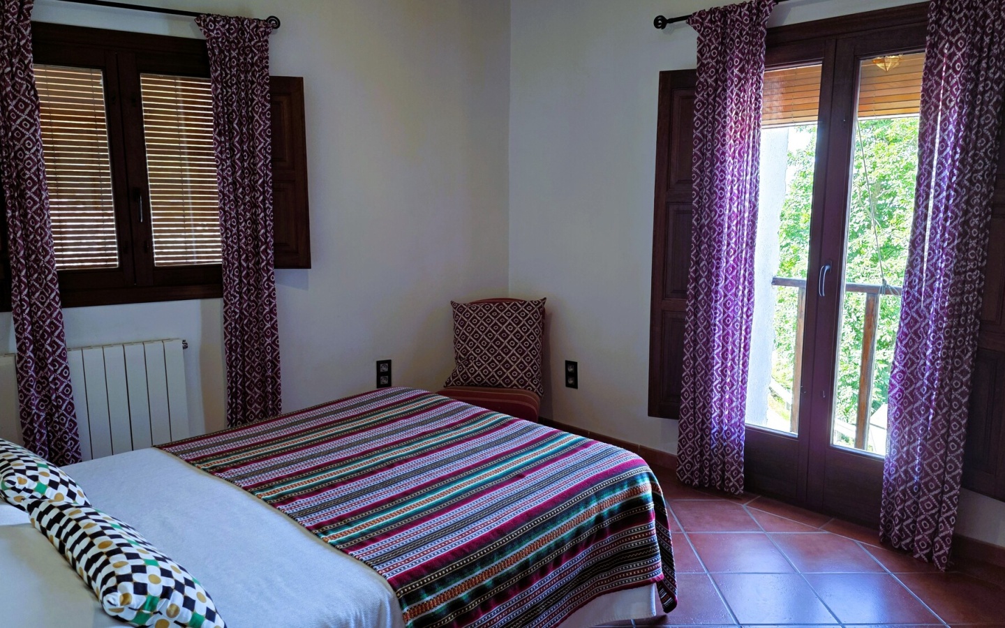 Style: A fusion of rustic Alpujarra charm (ceilings with exposed wooden beams and exposed brick) and colorful bohemian touches, creating a warm and inviting atmosphere.